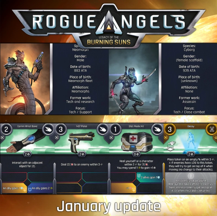 Join us on Discord and subscribe to the Tabletop Simulator mod here. The Tabletop Simulator mod for Rogue Angels has been fully updated with all the print-ready components.