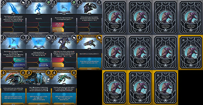 Supporters on Discord helped immensely in getting the action cards, companion cards, damage cards, dossiers and character sheets finished. Here is an example of one hero’s action cards (front and back):