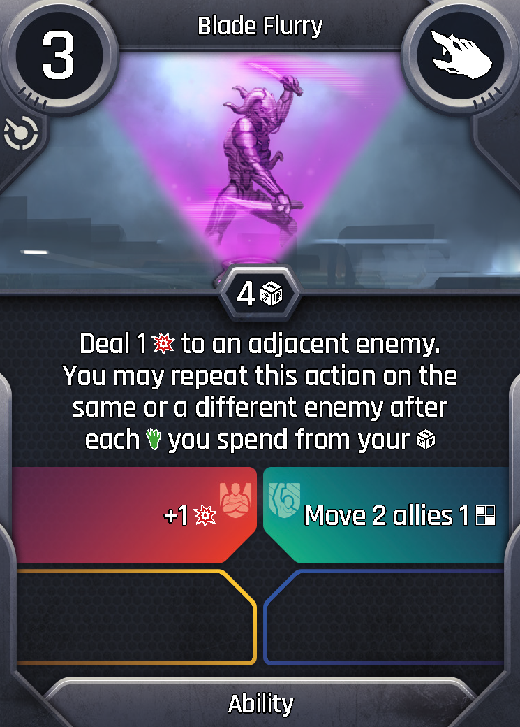 Rogue Angels is such an interesting game from so many different aspects. One of those aspects is the interesting variety of unique action cards for the heroes, and Gia has a few of those VERY interesting cards, including Blade Flurry: