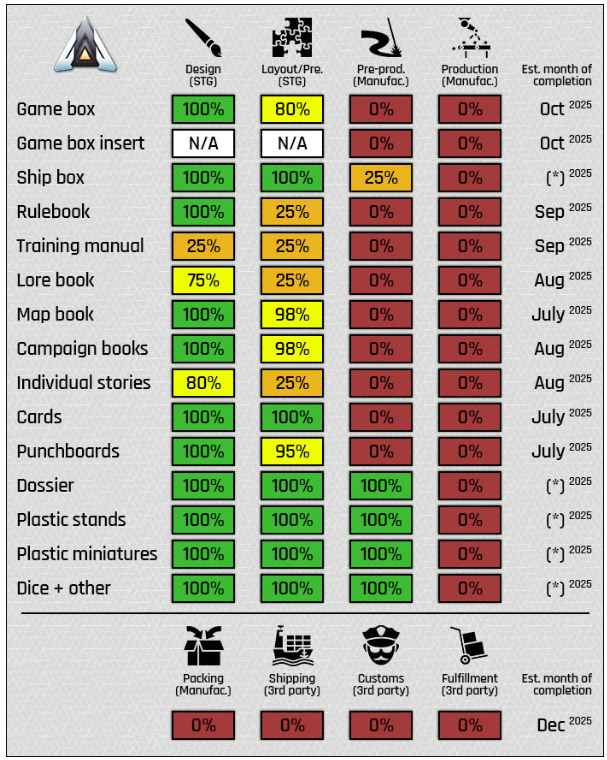 * Delivery of game is pushed to December 2025 due to the ton of work involved in producing a game like this. The manufacturer can’t just produce SOME of it now and the REST later … must be done all at the same time!